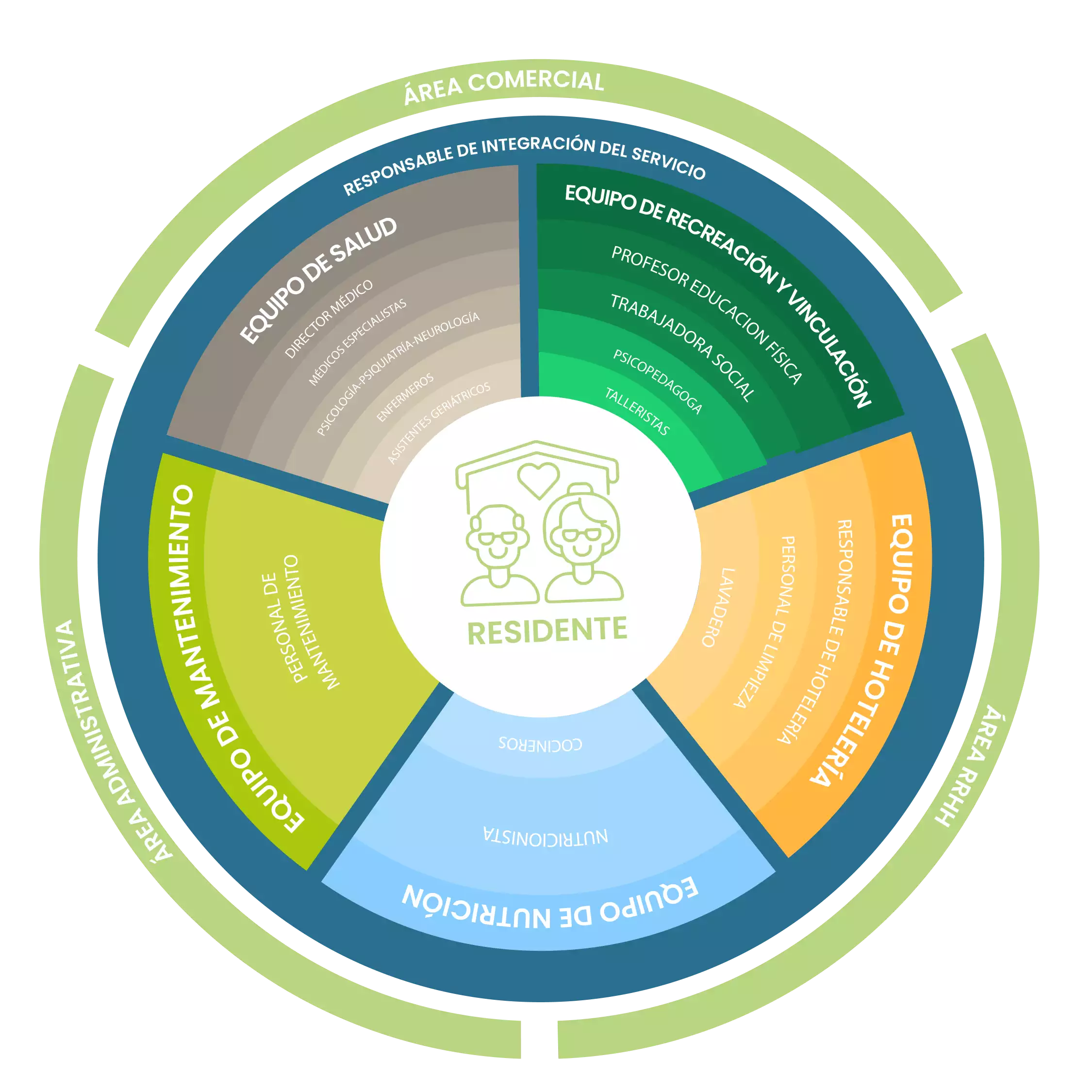 - Empatía con los residentes, colaboradores y los familiares.
